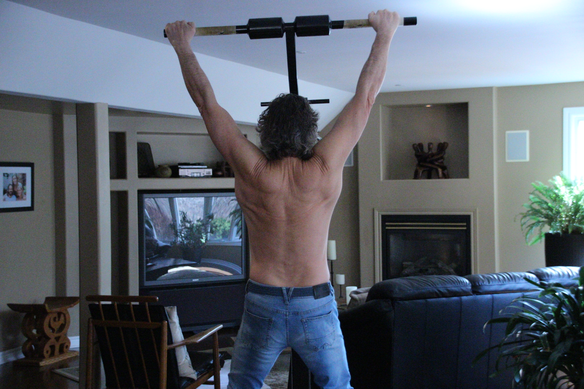 The dead hang not only decompresses and stretches out the spine, but it also strengthens muscles in the upper back, shoulders, core, forearms, hands and wrists.
