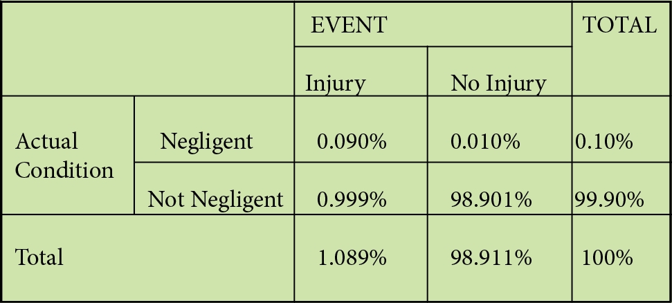 As a result, the conditional probability that the burn-over rate was due to negligent escape route equals .090% divided by 1.089% or 8.3%.
