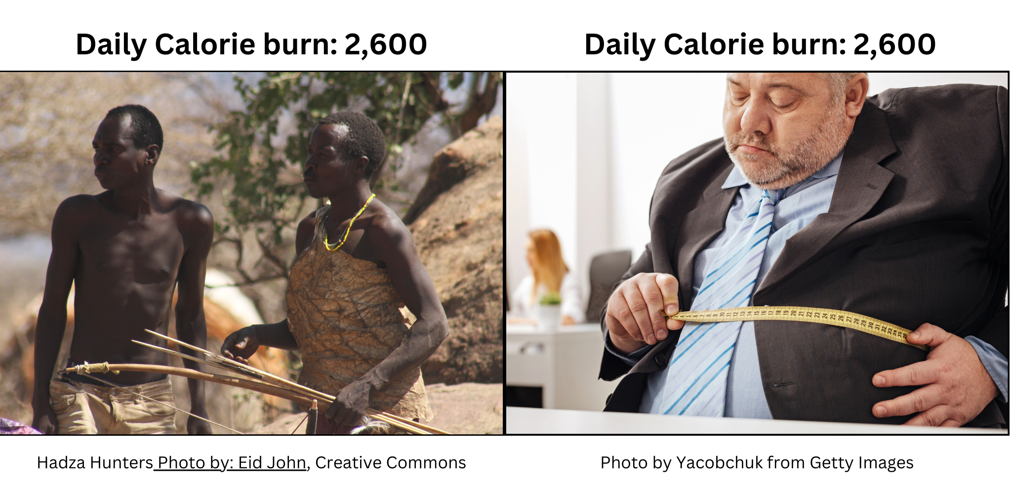 The results were astonishing. While the hunter-gatherers were physically active and lean, the lab results showed that they burned the same number of calories as the average American or European, even after the researchers controlled for body size.