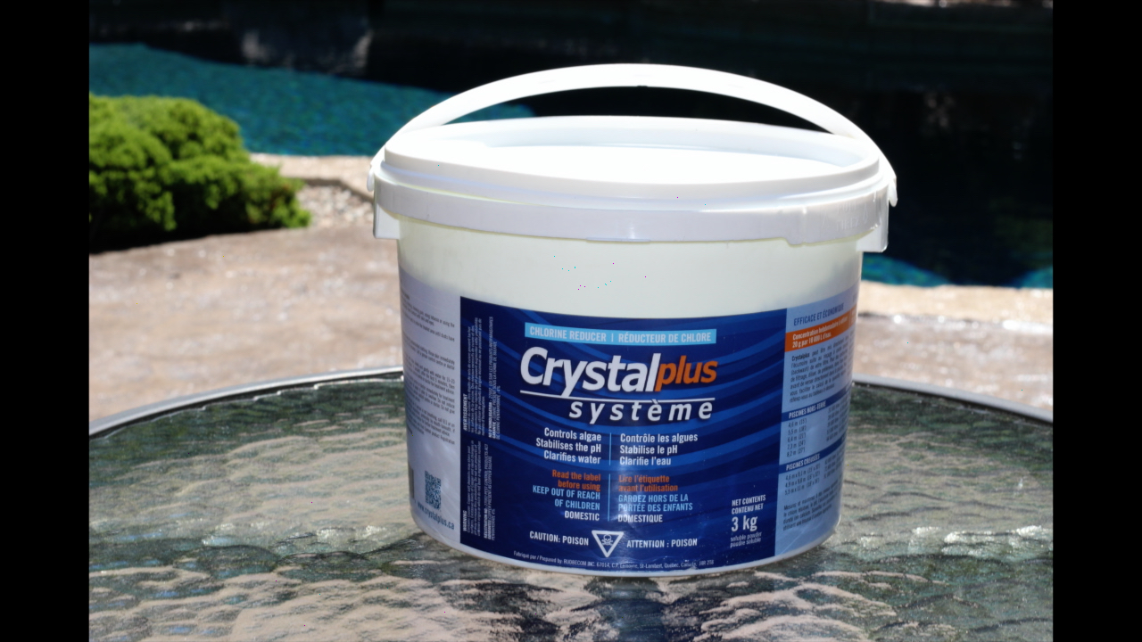 This is how you use it. Once a week, you pour a scoop into your skimmer, and that’s it. This miracle product takes care of the rest. My pool water is always perfectly clear. I no longer get any algae; the chlorine pucks that I throw in the hopper seem to last forever, and aside from the weekly scoop of Crystal Plus, I throw in two packets of shock once a week, and that’s it.