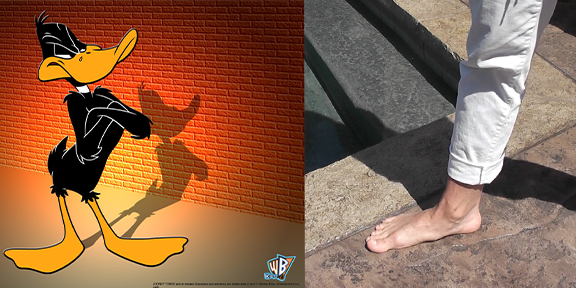 You see, I have flat feet. You, too, may have flat feet, but I’ll guarantee they cannot be flatter than mine. In fact, next to me, Daffy Duck has arches!