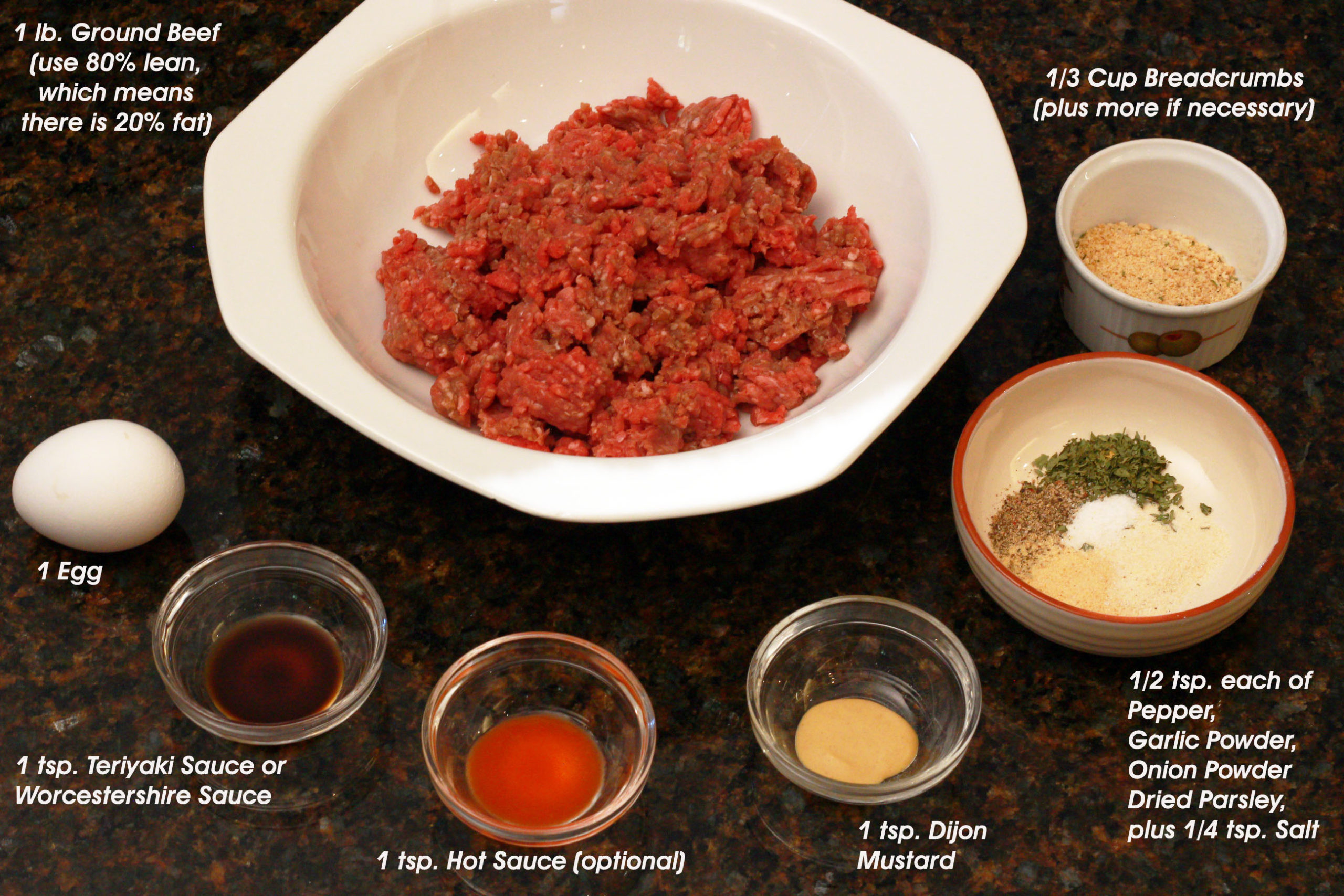 - 1 lb. Ground Beef (use 80% lean, which means there is 20% fat)