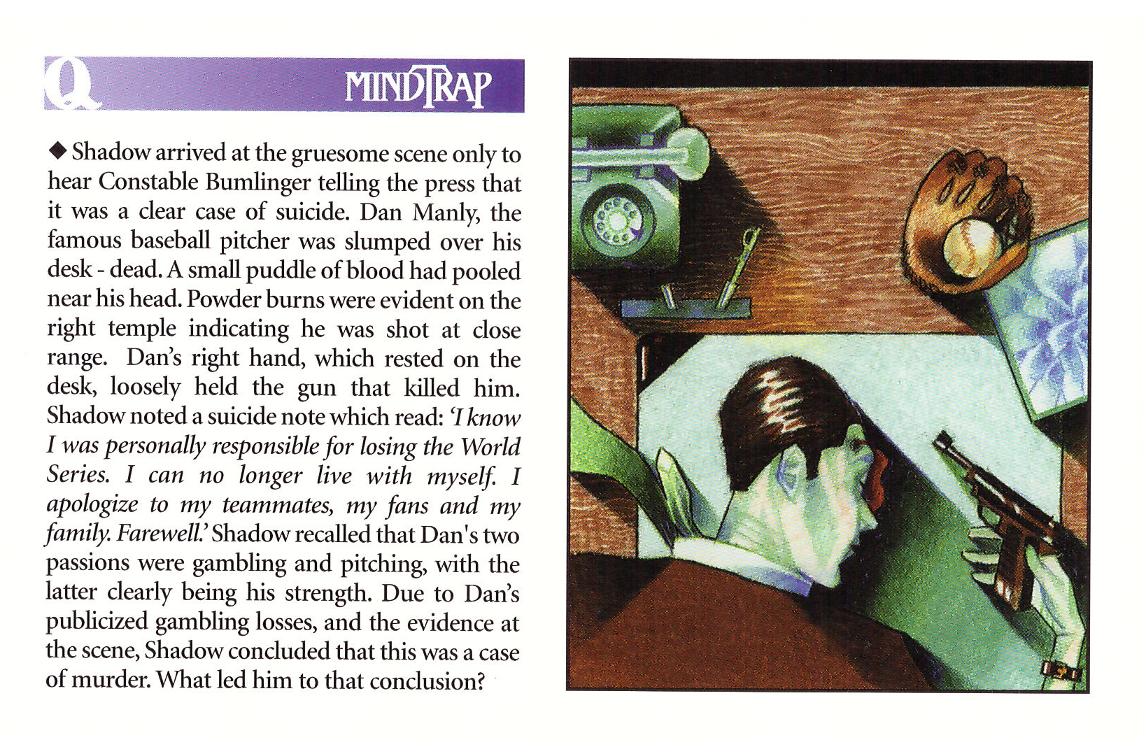 The last and 10th mailings revealed that MindTrap was a board game created by some local guys who just happened to be available for an interview.