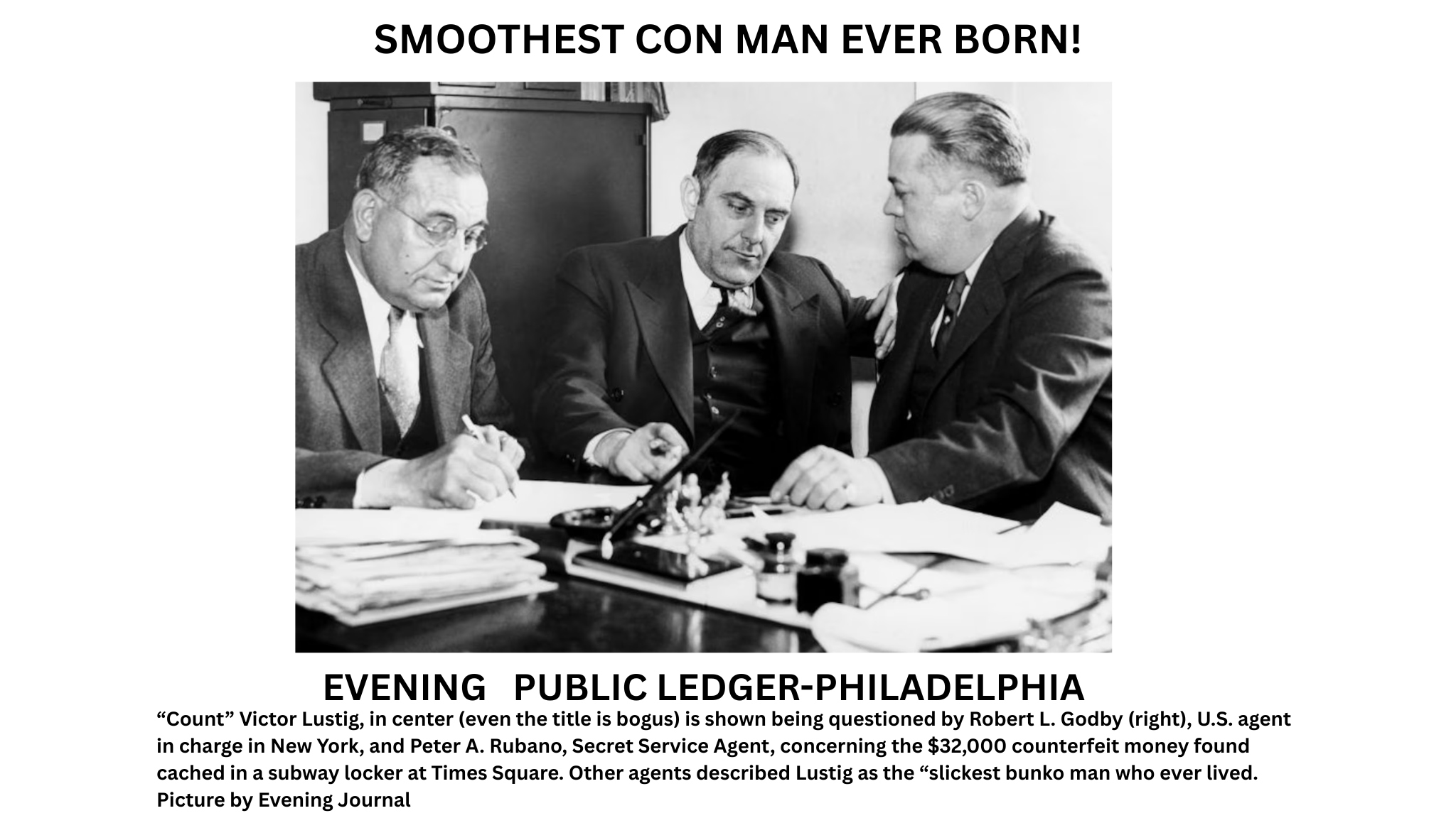 One of the greatest con masters of all time was “Count” Victor Lusting. Lustig was born in 1890 in Czechoslovakia to a middle-class family.
