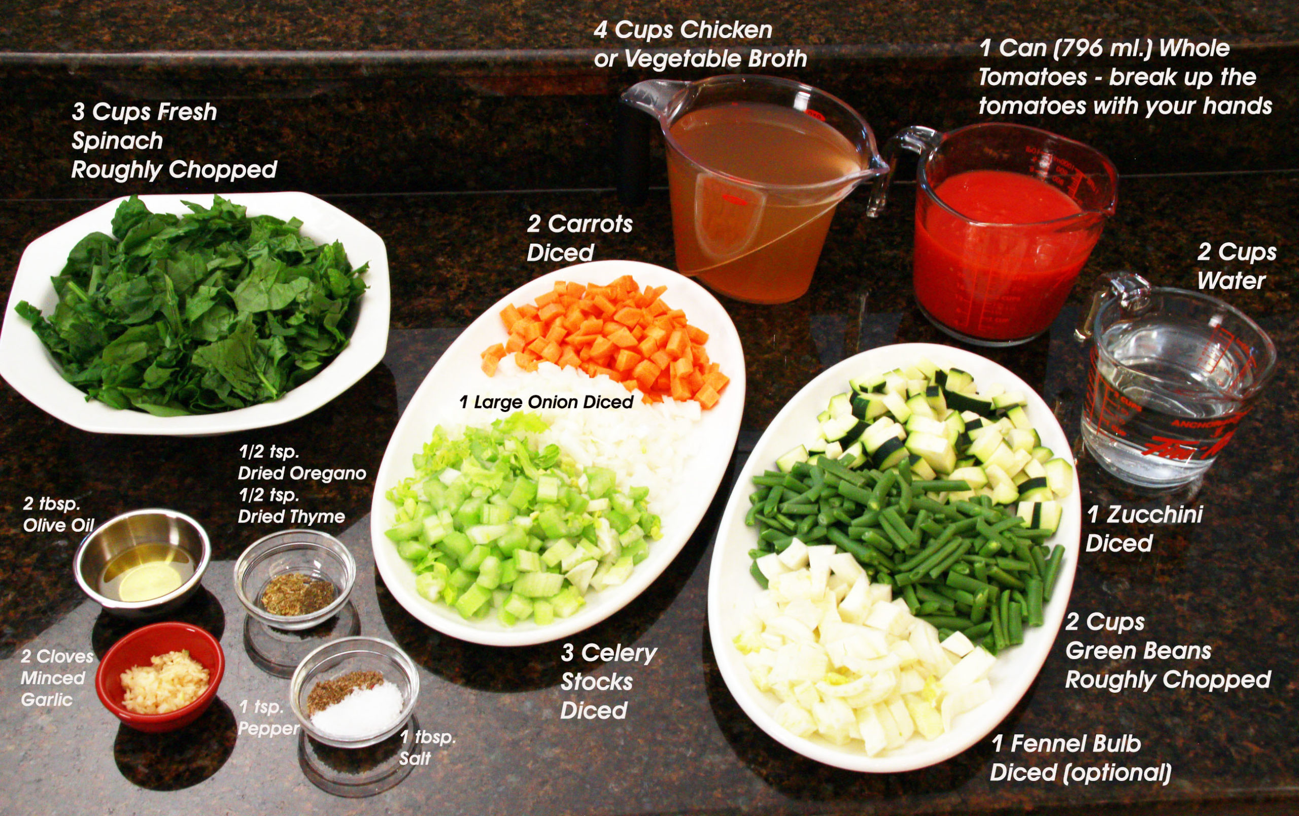½ Fennel Bulb Diced • 1 cup Chopped Cabbage • 1 Potato Peeled and Cubed • 2 Cups Fresh K ale Chopped • 2 Cups Swiss Chard • 2 Cups Cauliflower Florets