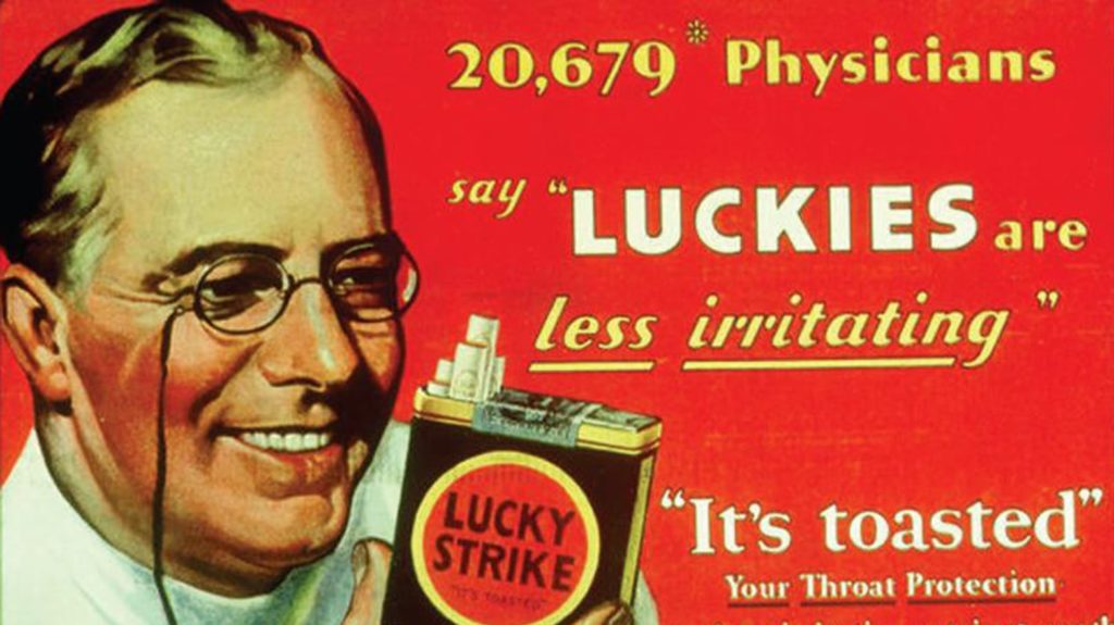 Back in the mid-60s, most people would have had a faint inkling that tobacco wasn’t necessarily healthy, but then we ask ourselves, “how bad could it really be? After all, everyone’s smoking, it’s endorsed by doctors, and the tobacco companies have scientific proof that it isn’t harmful. Besides, if it really was as poisonous as the alarmists claim, surely governments and health boards would step in and legislate against it.